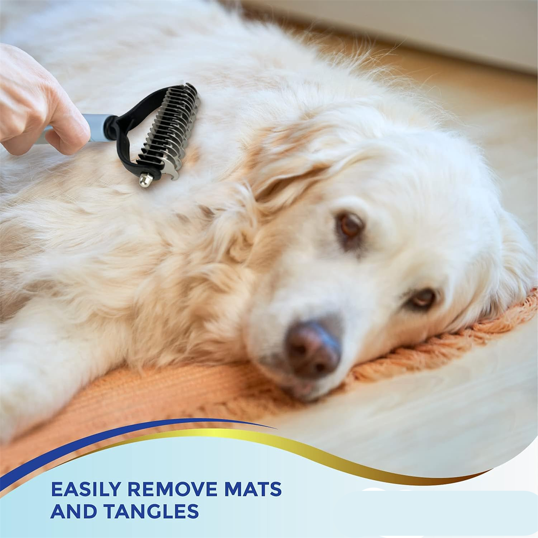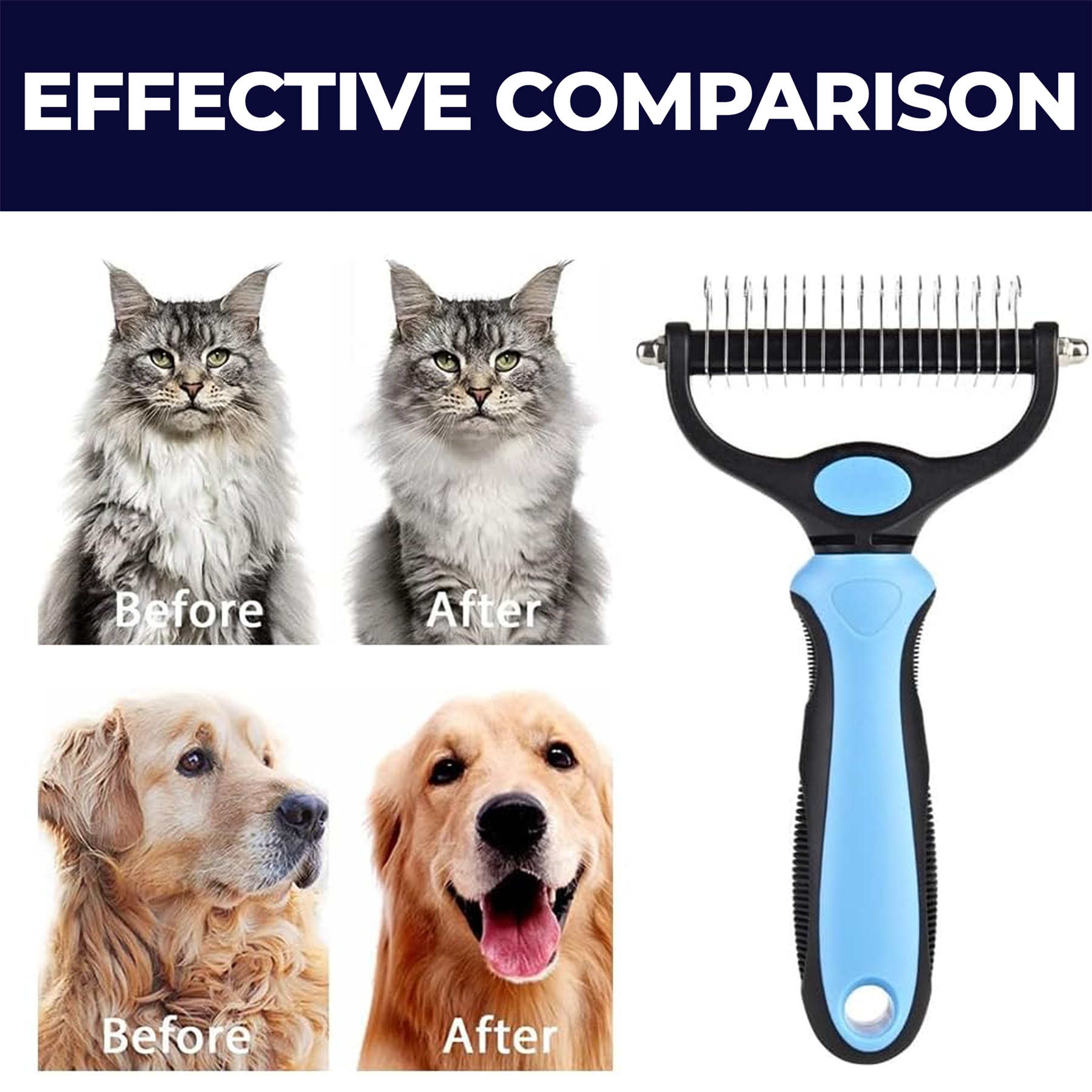 Dual-sided dematting comb removes knots, tangles, and loose undercoat safely while keeping coats shiny and healthy.